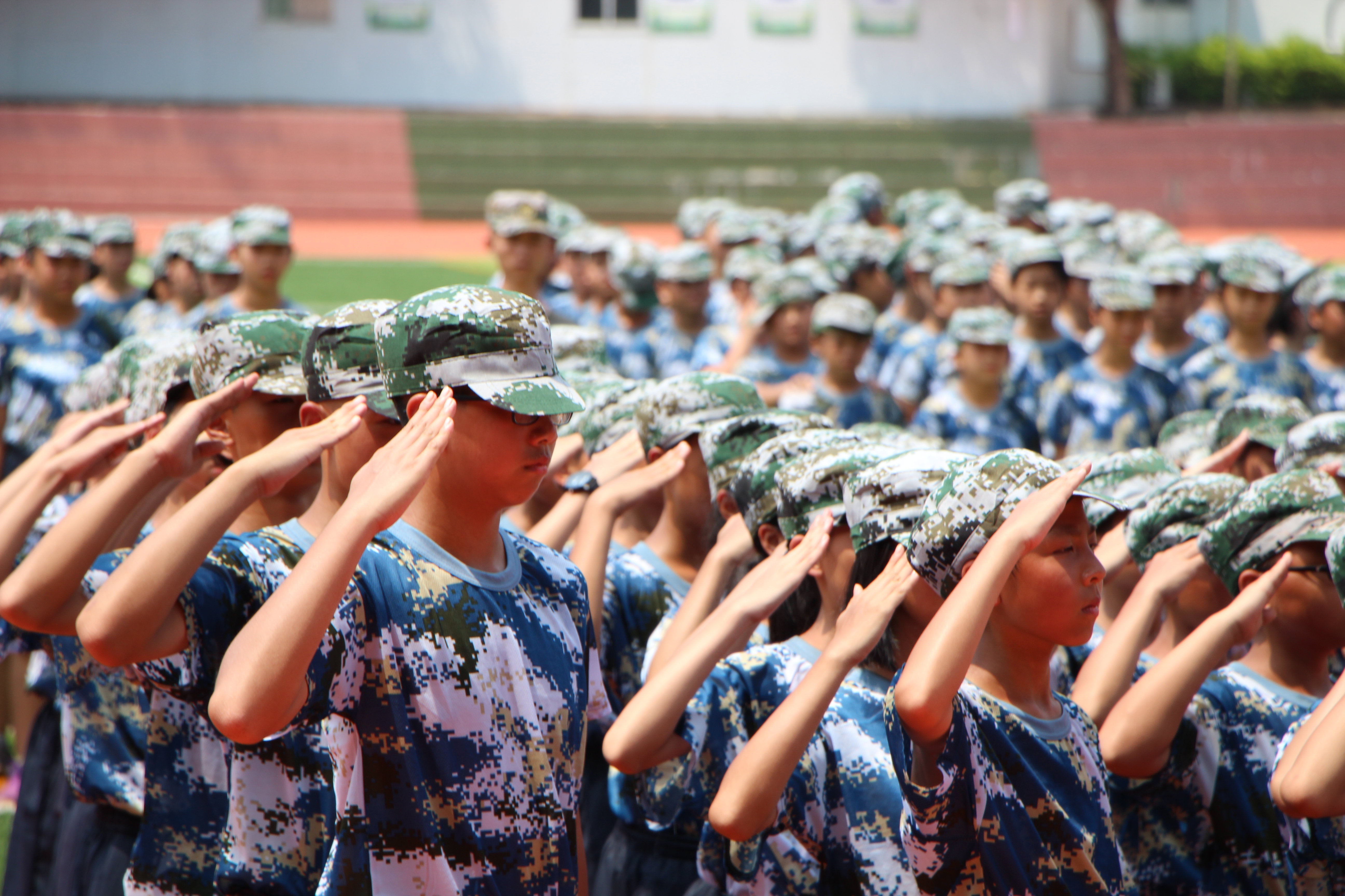 8月25日下午,烈日当空,我校足球场上人声鼎沸,伴着家长们热烈的掌声,我校2018级高一新生国防教育实践活动闭营仪式隆重举行。新生身着迷彩军装、肩挑师长期盼,以激情满怀之态、昂首阔步之姿迎接“军训大考”。学校领导邹俊校长、熊涛副校长、曾伟军副校长、唐虹副校长、吴采副校长、广州市民兵预备役基地领导李雄飞及高一学生家长参加了本次汇报表演。