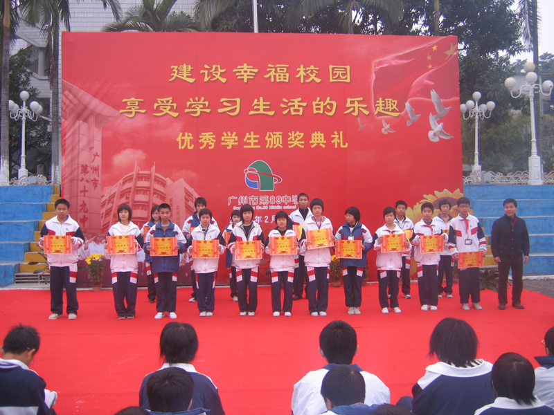 校园不仅仅是学习的地方,更是大家享受幸福、体验快乐的地方。对于教师而言,教育不是牺牲,而是享受;对于学生而言,学习也不是付出,而是乐趣。有人说幸福来自不懈的追求,有人说幸福来自无私的奉献,广州市第八十九中学全体师生却始终认为幸福主要来自实现个人价值的奋斗历程。隆重的“创建幸福校园,享受学习生活的乐趣”颁奖典礼提高了全校师生的幸福感,也增强了大家的自信和勇气,更激发了大家的斗志,我们坚信通过全体师生的共同坚持不懈的努力和奋斗,广州市第八十九中学2008年会更加辉煌、灿烂!