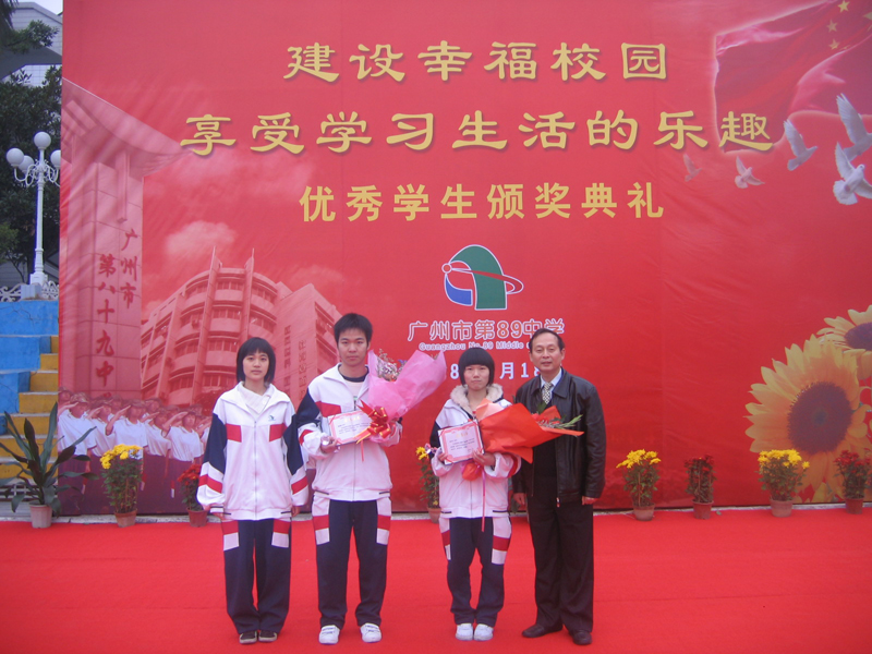 2007学年广州市第八十九中学提出“建设幸福校园,造就名师团队,实现可持续发展”作为工作重心,开展了系列活动,评选了“享受教育的幸福”十佳老师和“享受学习生活的乐趣”十项20名优秀学生。优秀学生评选以班级、年级为单位,采取自荐和班级、年级推荐相结合,学校考核小组审定,推荐出十个项目的50名候选人,在提名的基础上通过全校师生及考核小组投票最后产生了获奖者20名。这20名优秀学生是: