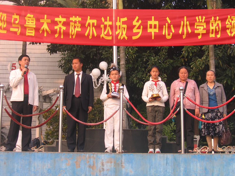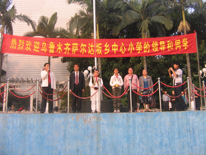 2007年11月12日上午,广州市第八十九中学迎来了一批特殊的客人,他们是来自新疆乌鲁木齐萨尔达坂乡中心学校的老师和同学,带着浓厚的少数民族的情意,带着别具风情的少数民族舞蹈和歌声来到了我们的身边。今天早上在升国旗仪式后我校全体师生进行了热烈的欢迎仪式。