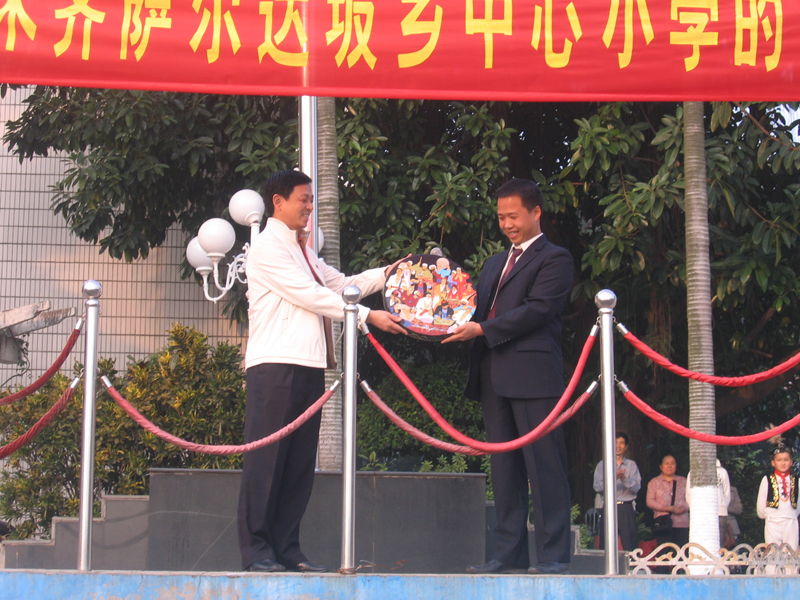 萨尔达坂乡中心学校杨金良校长感谢广州市第八十九中学的热情招待,并赠送了一件具有民族特色的礼物,彭建平校长回赠了礼物并发表讲话,最后萨尔达坂乡中心学校的老师和同学在广州市第八十九中学全体师生热烈的掌声下离场,衷心希望两校友谊长存,以后不断开展合作交流,把我们的教育事业越办越好!