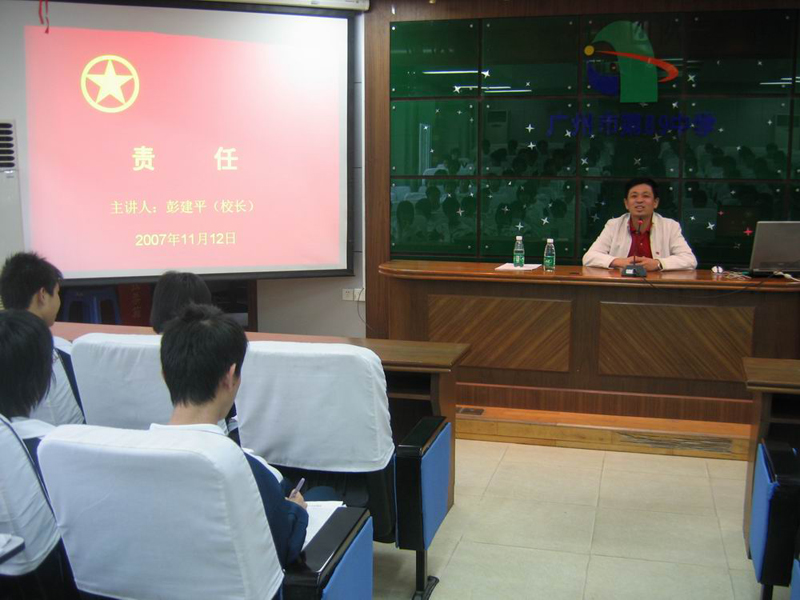 2007年11月12日,广州市第八十九中学彭建平校长为89中团校全体入团积极分子上了题为“责任”的一堂生动精彩的课,促使我们深思,给我们以警醒。