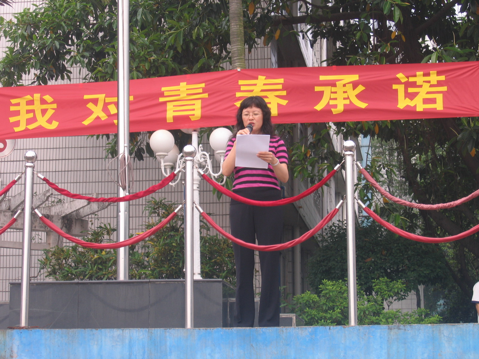 5月4日早上,我校全体师生在学校大操场隆重举行了“我对青春承诺”理想信念教育暨“五四”青年节庆祝活动。活动由校团委书记张振锋老师主持,曾素珍副校长做了讲话。