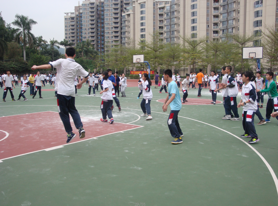3月18日下午活动课,在八十九中学美丽的宝翠园校区,初二级的同学举行了丢沙包比赛。活动开始前,年级级长,谢主任以及刘智老师做了赛前动员以及赛规介绍。